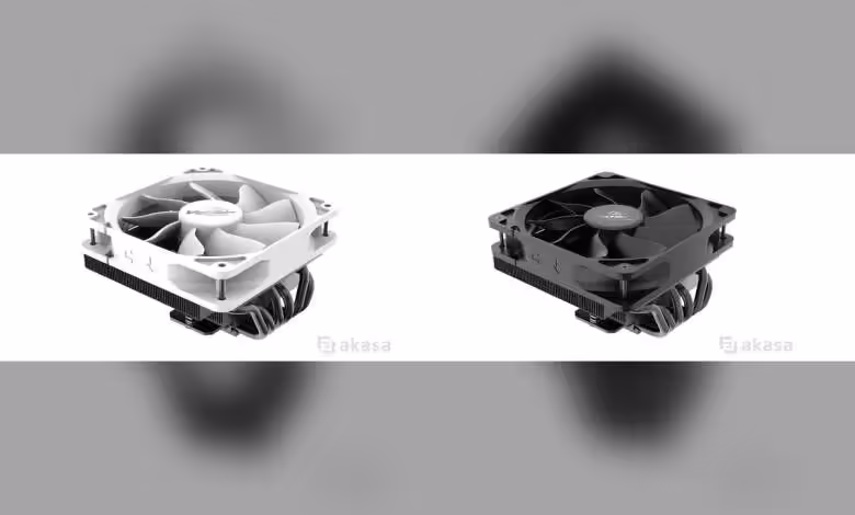 Akasa a dévoilé à Londres une nouvelle salve de ventirads top-flow compacts, six modèles regroupés dans la série H6L (S) à six caloducs, avec des hauteurs de 67,2 à 77,6 mm et des capacités annoncées de 150 à 165 W de TDP. Le positionnement vise clairement les configurations SFF où la contrainte en hauteur reste critique sans sacrifier la pression d’air ni la couverture des étages d’alimentation autour du socket.