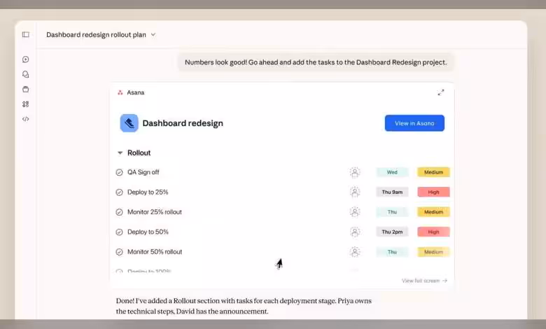 Au-delà du confort, l’intérêt est de réduire la friction entre génération et exécution : on passe d’un brief à un artefact exploitable sans rupture de contexte, que ce soit une roadmap Asana, un flowchart FigJam ou une présentation Canva. Pour les équipes, la valeur dépendra surtout de la profondeur des permissions, de la traçabilité des actions et de la capacité à respecter les règles d’accès par espace de travail, points à surveiller lors du déploiement en entreprise.