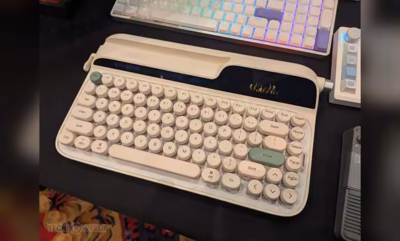 Peu de lancements réellement neufs sur le stand Epomaker cette année, mais un prototype attire l’œil. D’après TechPowerUp, la marque prépare un clavier mécanique inspiré des machines à écrire anciennes, encore sans nom officiel. Le châssis adopte un format 75 %, du RGB par touche et une connectivité sans-fil, sans fiche technique détaillée pour l’instant.