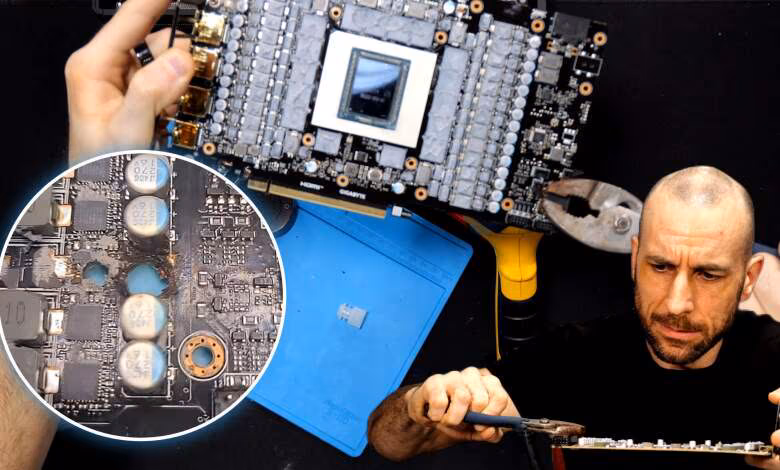 Frame Chasers précise que la carte présentait déjà des signes d’instabilité avant l’opération. Après la panne, le PCB montre un trou visible sur les images, avec l’apparence d’un condensateur qui aurait explosé.