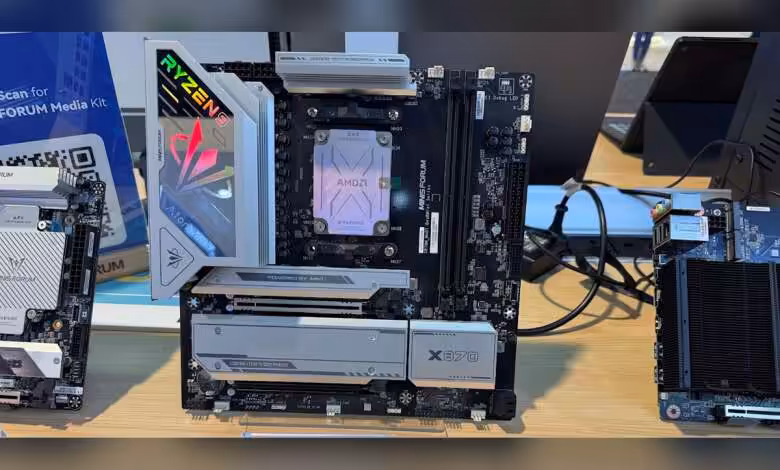 Sur le stand de Las Vegas, d’après Tweakers, Minisforum expose la BD995M X3D, une carte mATX équipée d’un Ryzen 9 9955HX ou d’un Ryzen 9 9955HX3D directement soudé, tous deux avec iGPU Radeon 610M. La plateforme ajoute deux emplacements DDR5 et, fait notable, un chipset X870 pour étendre l’I/O au-delà de ce que propose l’APU. Selon la source, « X870 est une classe de chipset AM5 de bureau » et les cartes qui l’embarquent sont attendues avec USB4.