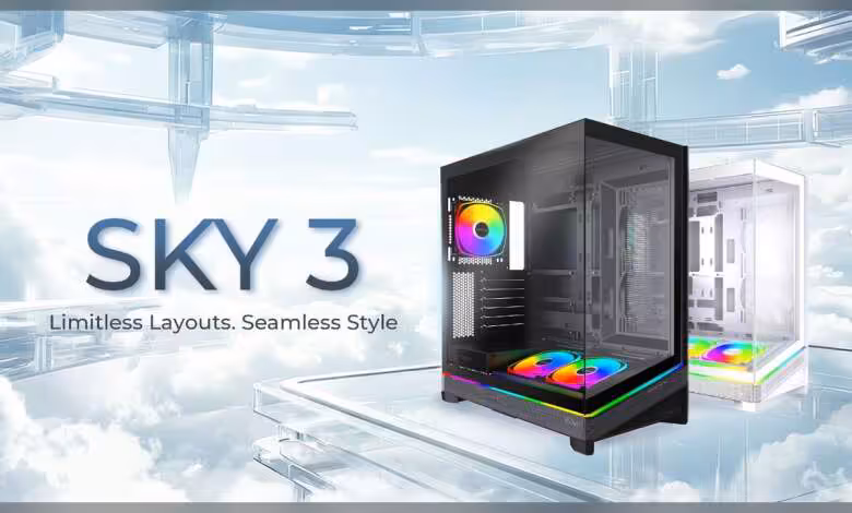 Le Sky 3 introduit une chambre inférieure adaptative : compartiment PSU et support de ventilateurs inférieurs sont interchangeables pour prioriser GPU ou CPU. En mode GPU, l’admission est placée sous la carte graphique pour maximiser la pression statique et l’efficacité de refroidissement. En mode CPU, l’air est redirigé vers la zone carte mère afin d’aider les VRM et stabiliser le CPU.