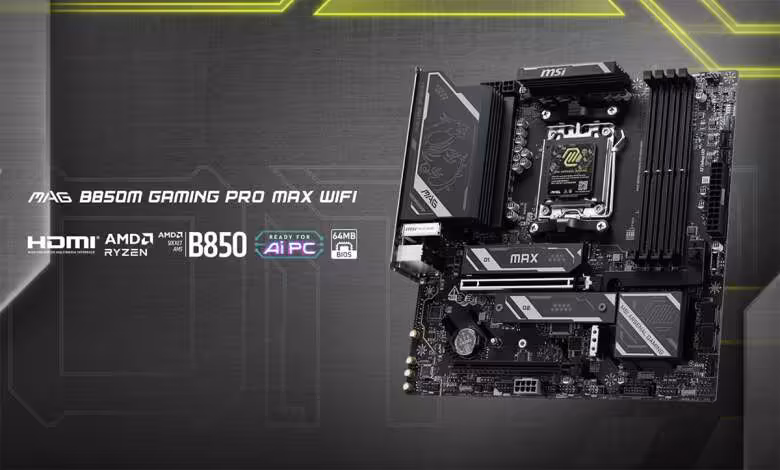 MSI ajoute la MAG B850M GAMING PRO MAX WIFI à son catalogue AM5. Compatible Ryzen 9000, Ryzen 8000 et Ryzen 7000 desktop, elle embarque quatre slots DDR5 pour 256 Go et vise le DDR5‑8200+ en OC.