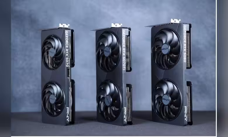Ces PNY RTX 50 Slim visent les configurations à contrainte de volume tout en conservant un double slot strict de 40 mm, une ventilation à grand diamètre et une base thermique en VC pour stabiliser les performances.