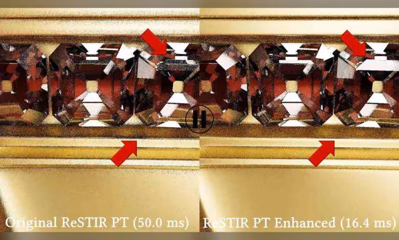 Rendre un éclairage multi-rebonds crédible en temps réel reste extrêmement coûteux en calcul. La nouvelle itération de ReSTIR PT revendique un gain de 2 à 3 fois sur les performances, avec moins d’erreurs visuelles et numériques à la clé.
