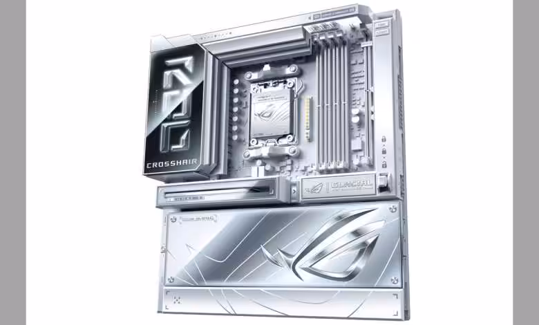 ASUS vient de dévoiler la ROG Crosshair X870E Glacial, une carte mère haut de gamme au design blanc argenté pensée pour le watercooling custom.
