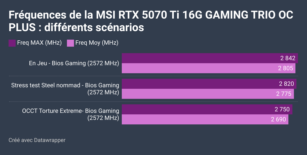 Fréquences & Consommation de la MSI RTX 5070 Ti 16G GAMING TRIO OC PLUS