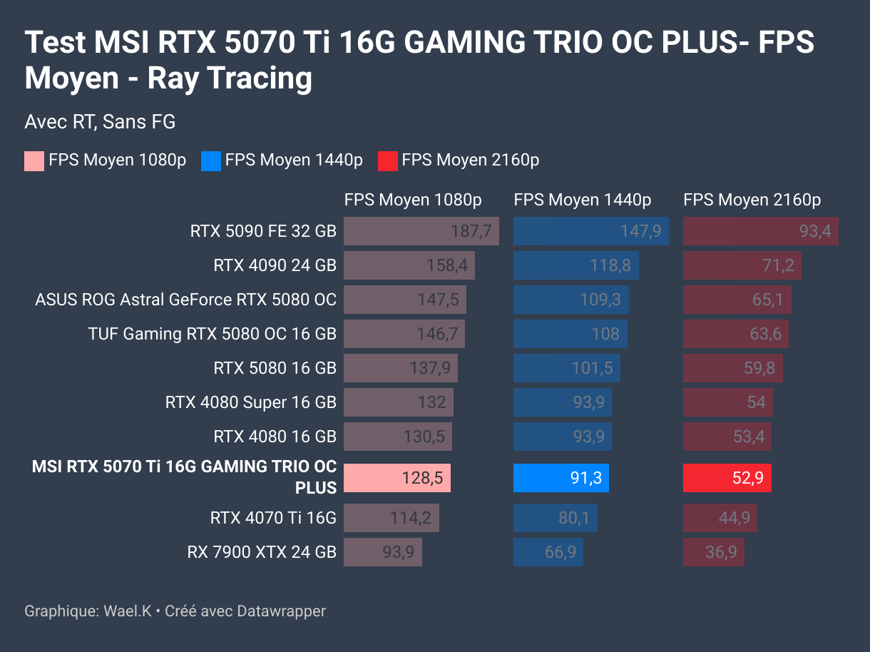 RTX 5070 Ti 16G GAMING TRIO OC PLUS : Ray Tracing FPS Moyen
