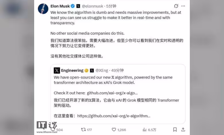 Elon Musk annonce l’ouverture du code de l’algorithme « For You » de X. Le système publié reflète la version de production actuelle et s’appuie sur une architecture de type Transformer, la même famille que le modèle Grok de xAI. Musk admet des limites et promet un processus d’amélioration en continu, visible en temps réel, revendiquant une transparence que ses concurrents n’offrent pas.