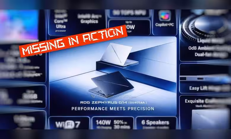ASUS avait préparé un ROG Zephyrus G14 GU405AA animé par un Core Ultra 3 « Panther Lake » et une iGPU Arc B390, sans GPU dédié. Ce point tranchait avec l’ADN de la gamme G-Series. Le modèle avait déjà fuité en octobre via Geekbench, confirmant l’absence de GPU discret.